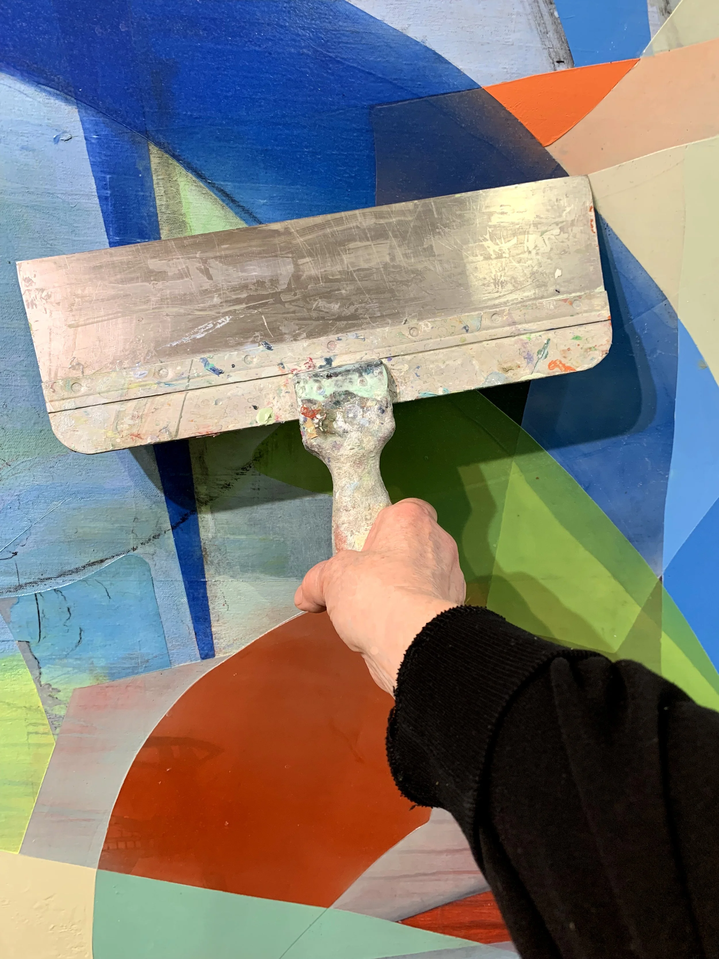 My work is informed through a love of post-painterly abstraction from the 1960s, and filtered through the lens of our contemporary world. The minimalism of the 60s was often intended to reflect a sense of spirituality, transcendence, or “Onement,” (to quote Barnett Newman.) With the emergence of postmodernism these ideas became critically suspect with their allusion to grand narratives such as organized religion or totalitarianism.