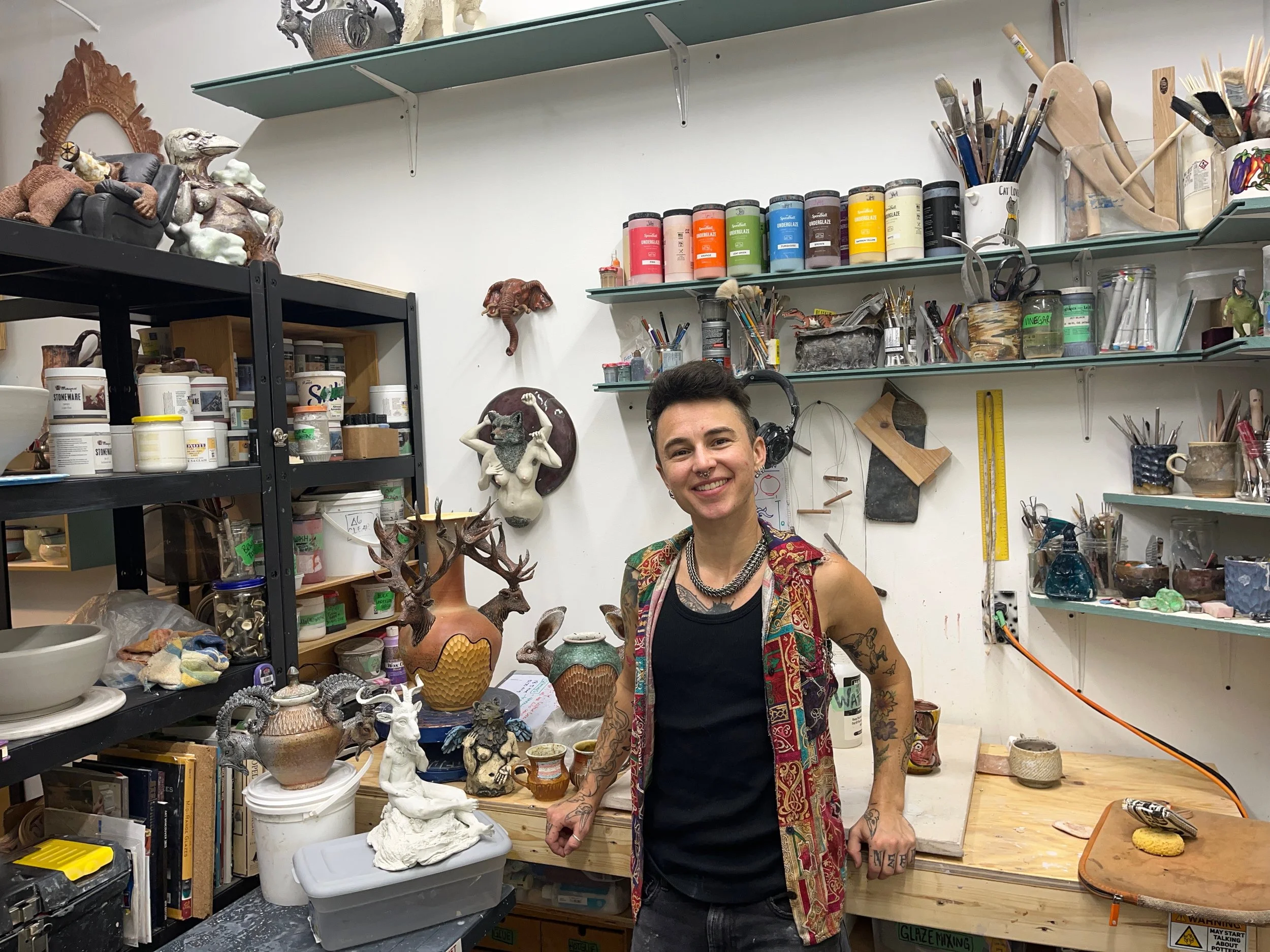 Jai Sallay-Carrington is a queer and transgender Canadian ceramic sculptor who earned their MFA at the University of Washington in 2023. They have traveled around Europe, North America and China to install exhibitions, attend artist residencies and teach workshops. Their passion for uplifting the 2SLGBTQ+ community fuels their passion to create art that asks the hard questions and strengthens community.
